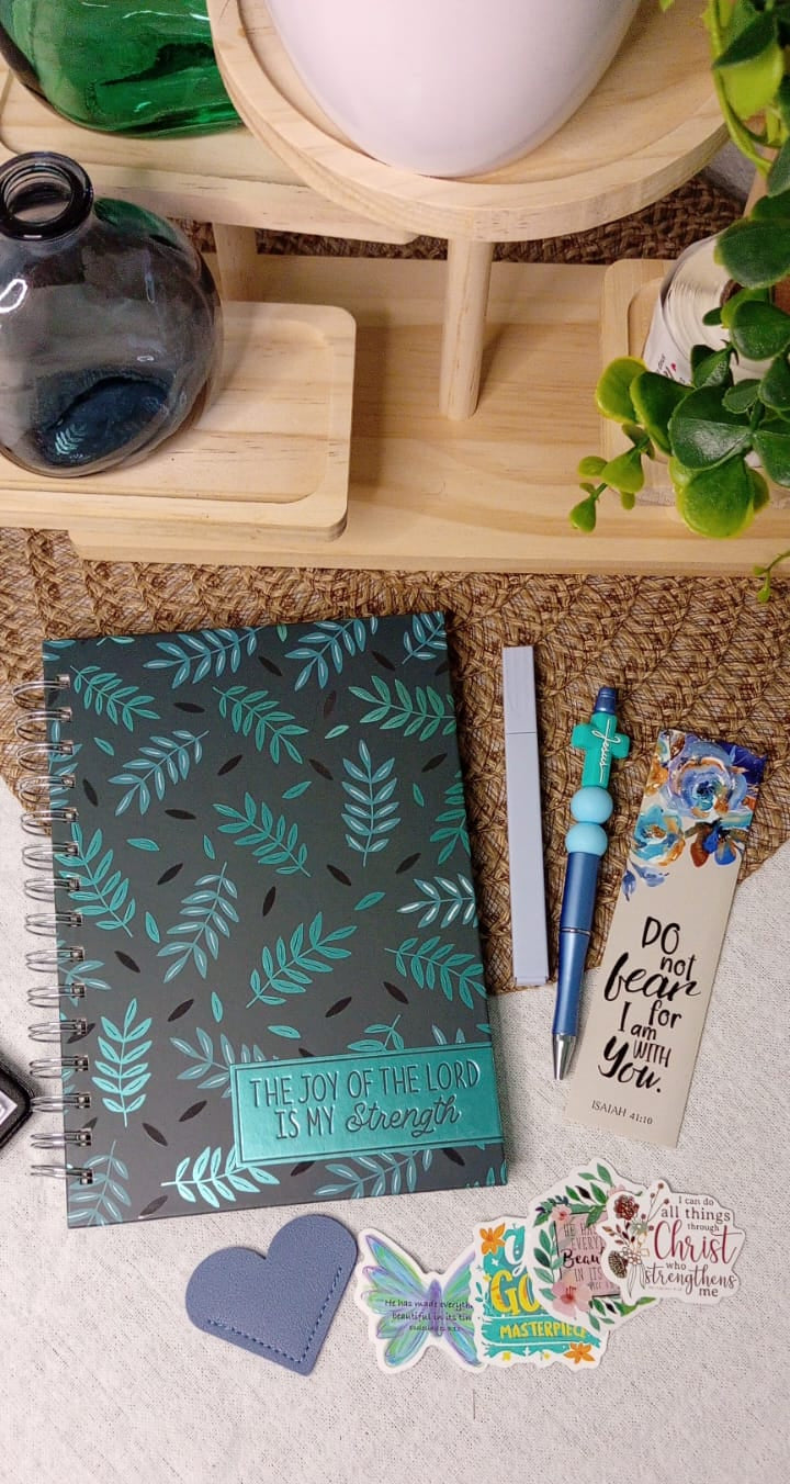 - A5 Wirebound Notebook 192 lined pages with Scripture