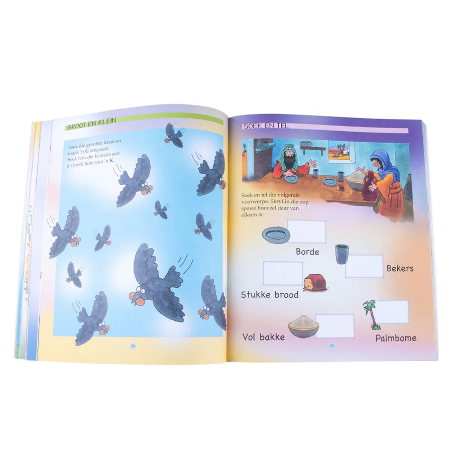 Behalwe ’n liefde vir die Woord sal die Bybelstorie-aktiwiteitsboek ook 5- tot 8-jariges se syfervaardigheid, probleemoplossingsvaardighede, geheue en leesvaardigheid verbeter.