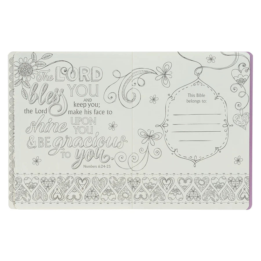 My Creative Bible® for Girls is a uniquely designed edition of the English Standard Version Bible that provides more than 500 ready-to-color line-art illustrations. The extra-wide margins for girls aged 8-12 is perfect to personalize their Bible while they journal and color in creative ways. 366 short inspirational devotions specifically aimed at young girls will enable them to engage with God, while the 50 Bible character profiles teach girls more about the godly women in the Bible. No matter their artistic level, girls will love the coloring, journaling, scribbling and doodling experience. This is a Bible they will treasure forever.