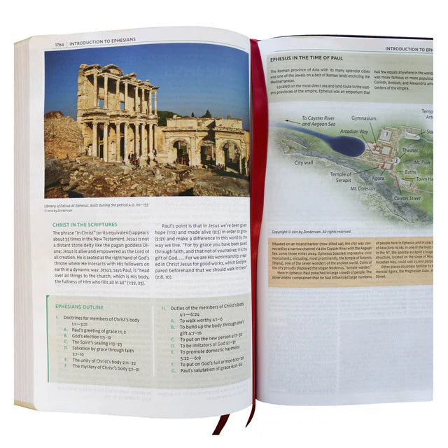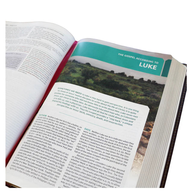 • 140+ Maps and charts throughout the Scriptures and in the back to show a visual representation of locations and themes in the Bible.