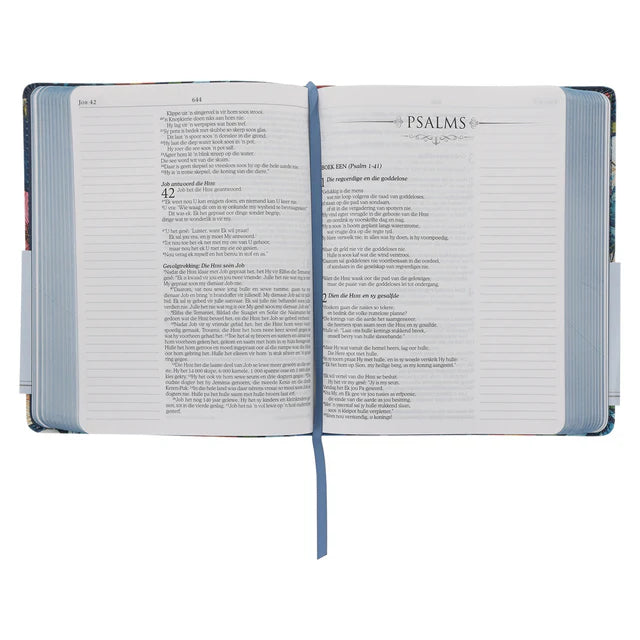 NLV Donkerblou Blomme Kunsleer Joernaal-Bybel