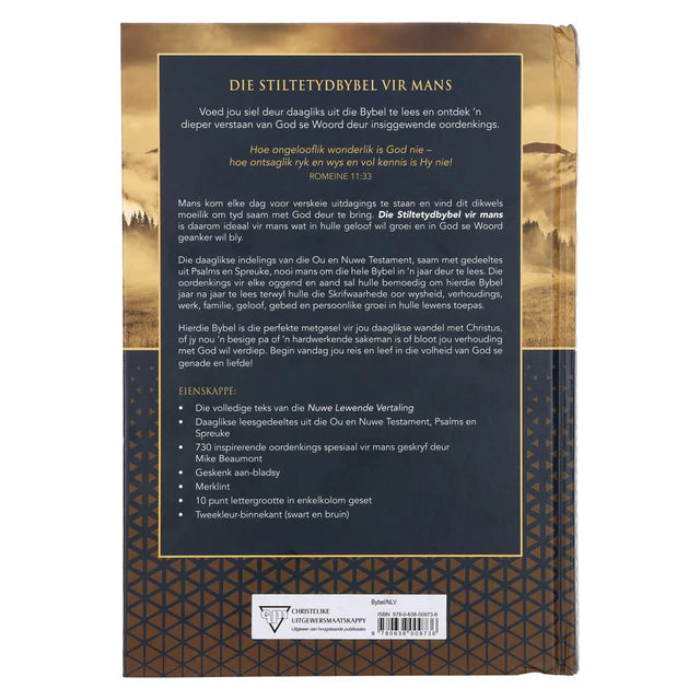 Mans kom elke dag voor verskeie uitdagings te staan en vind dit dikwels moeilik om tyd saam met God deur te bring. Die Stiltetydbybel vir Mans is daarom ideaal vir mans wat in hulle geloof wil groei en in God se Woord geanker wil bly.