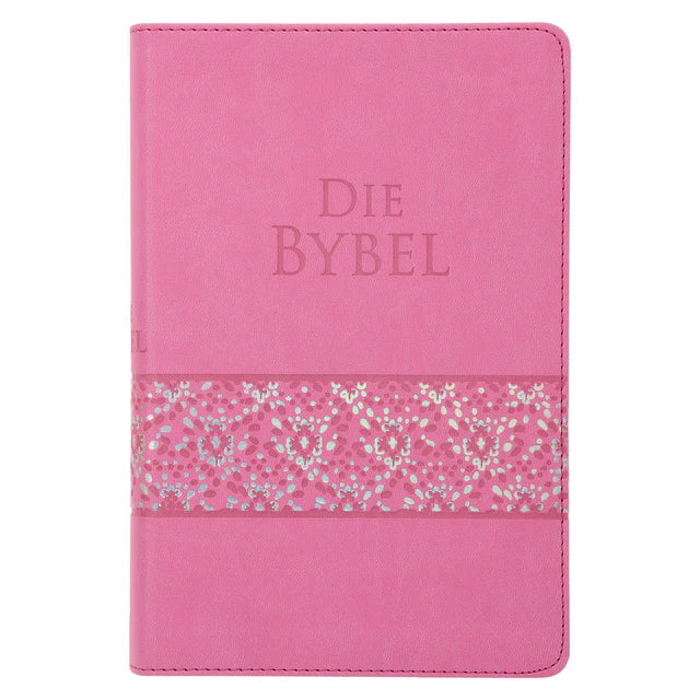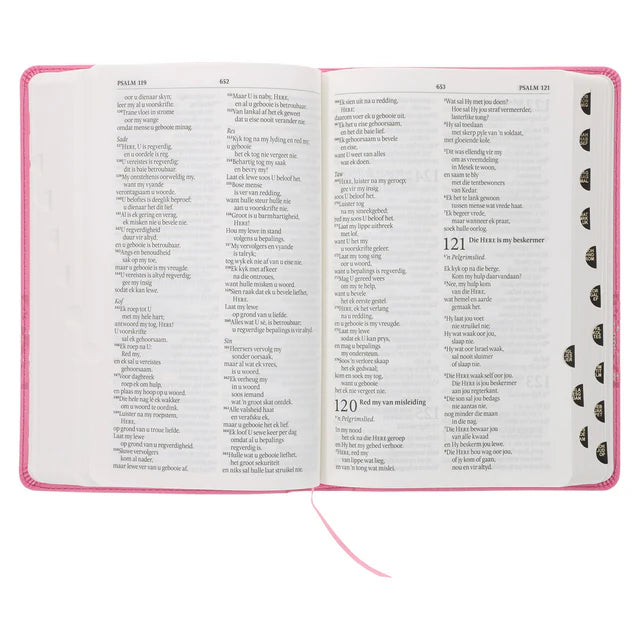 NLV Pienk Glinster Kunsleer Standaard Bybel Met Duimgrepe