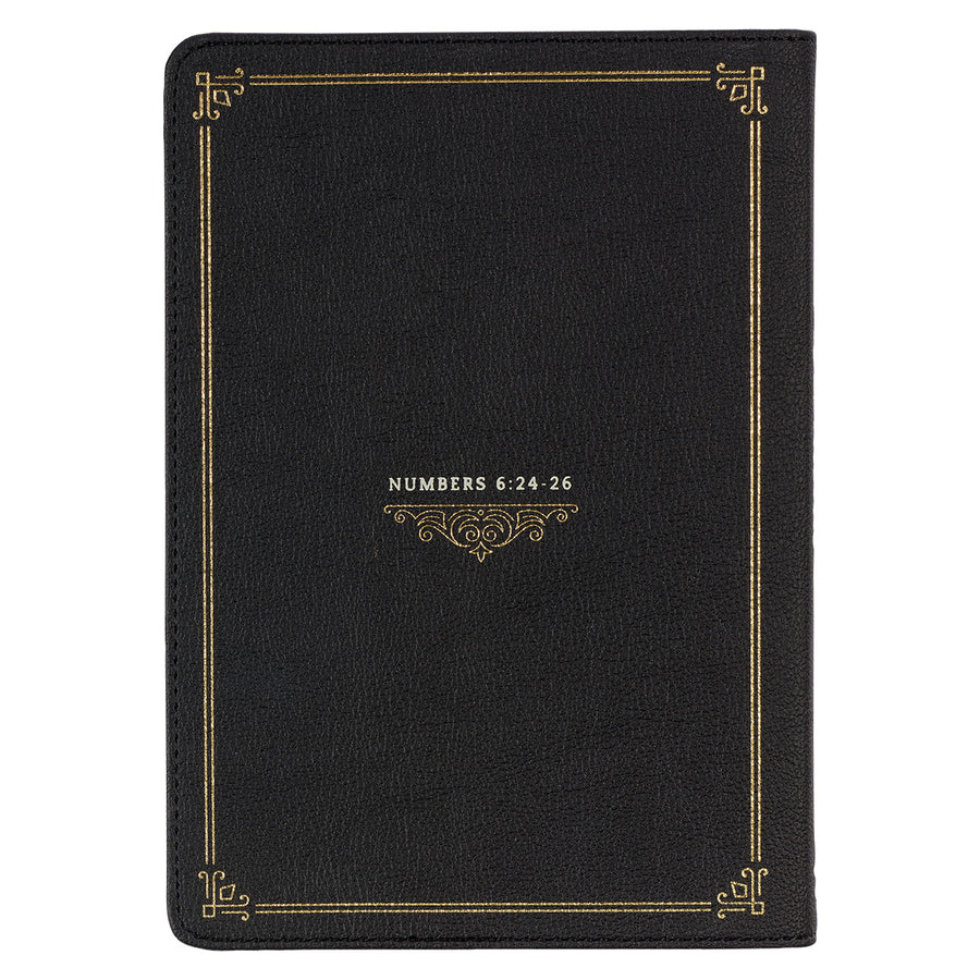 Journal the stress of the day away on the pages of the Bless You and Keep You Black Faux Leather Classic Journal.